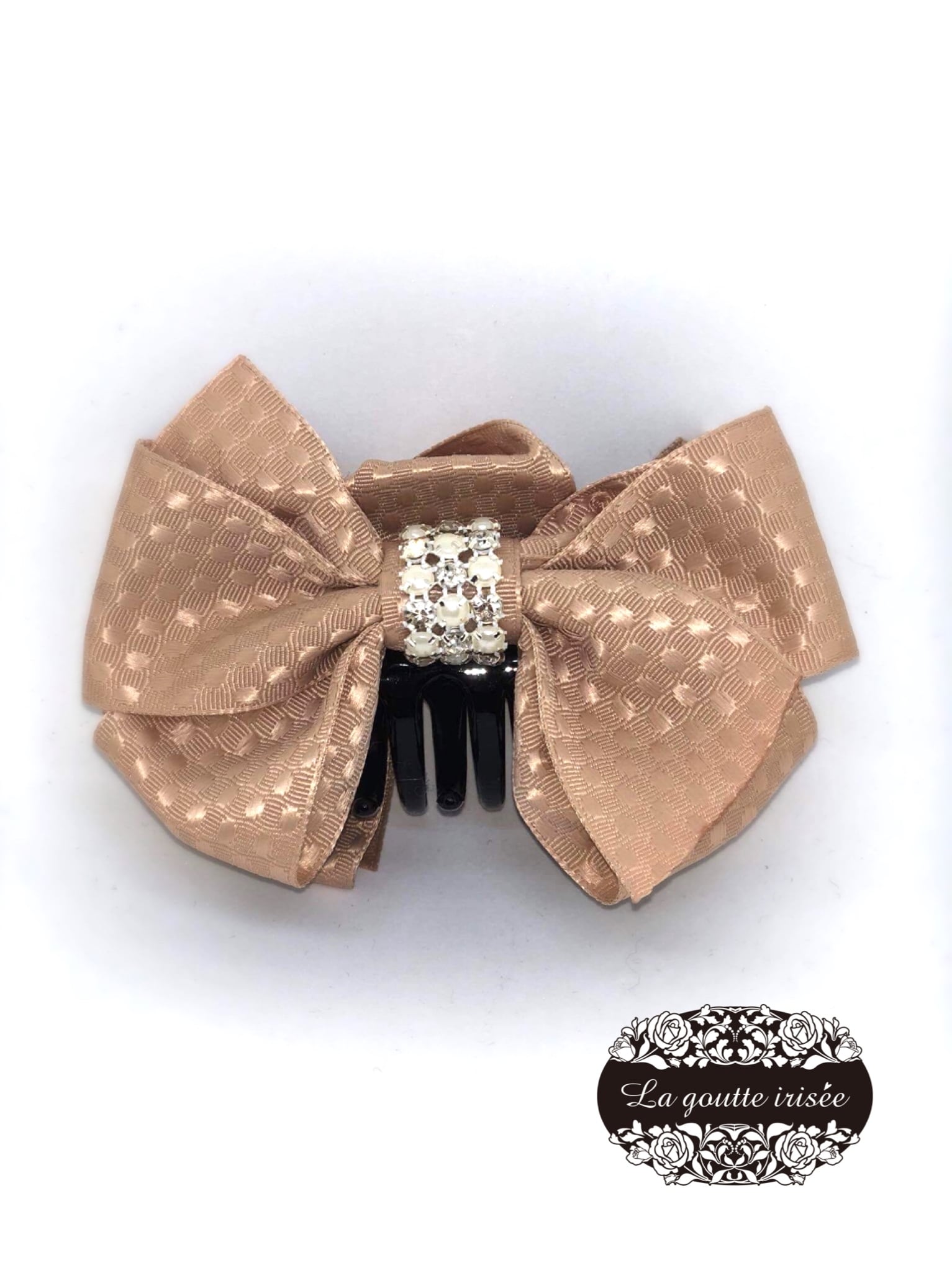 人とかぶらないリボンがとても大人っぽく、真ん中のパールストーンブレードがキラキラとかわいいバンスクリップ です❤︎